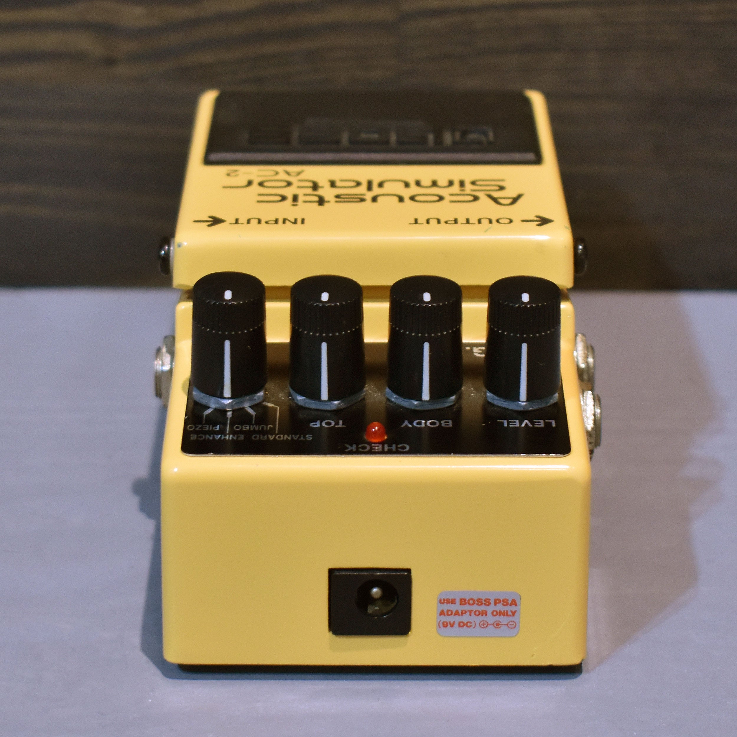 The BOSS AC-2 Acoustic Simulator is a compact effects pedal designed to change the sound of a standard electric guitar into that of an acoustic-electric guitar.