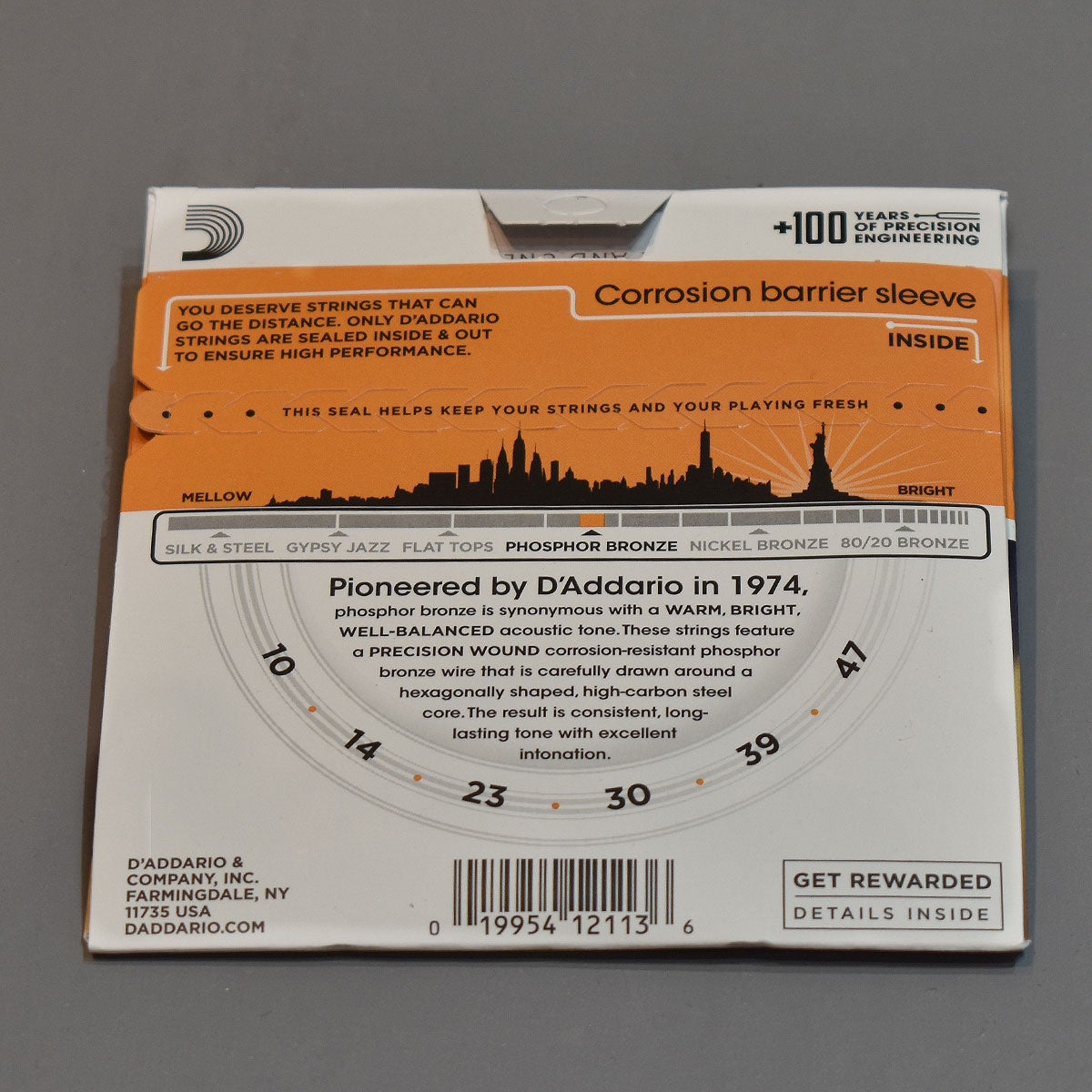 EJ15 is an extra light gauge Phosphor Bronze string providing lower tension ideal for vintage instruments and playability. Since D'Addario introduced Phosphor Bronze guitar strings in 1974, they have been synonymous with warm and well-balanced acoustic tone.