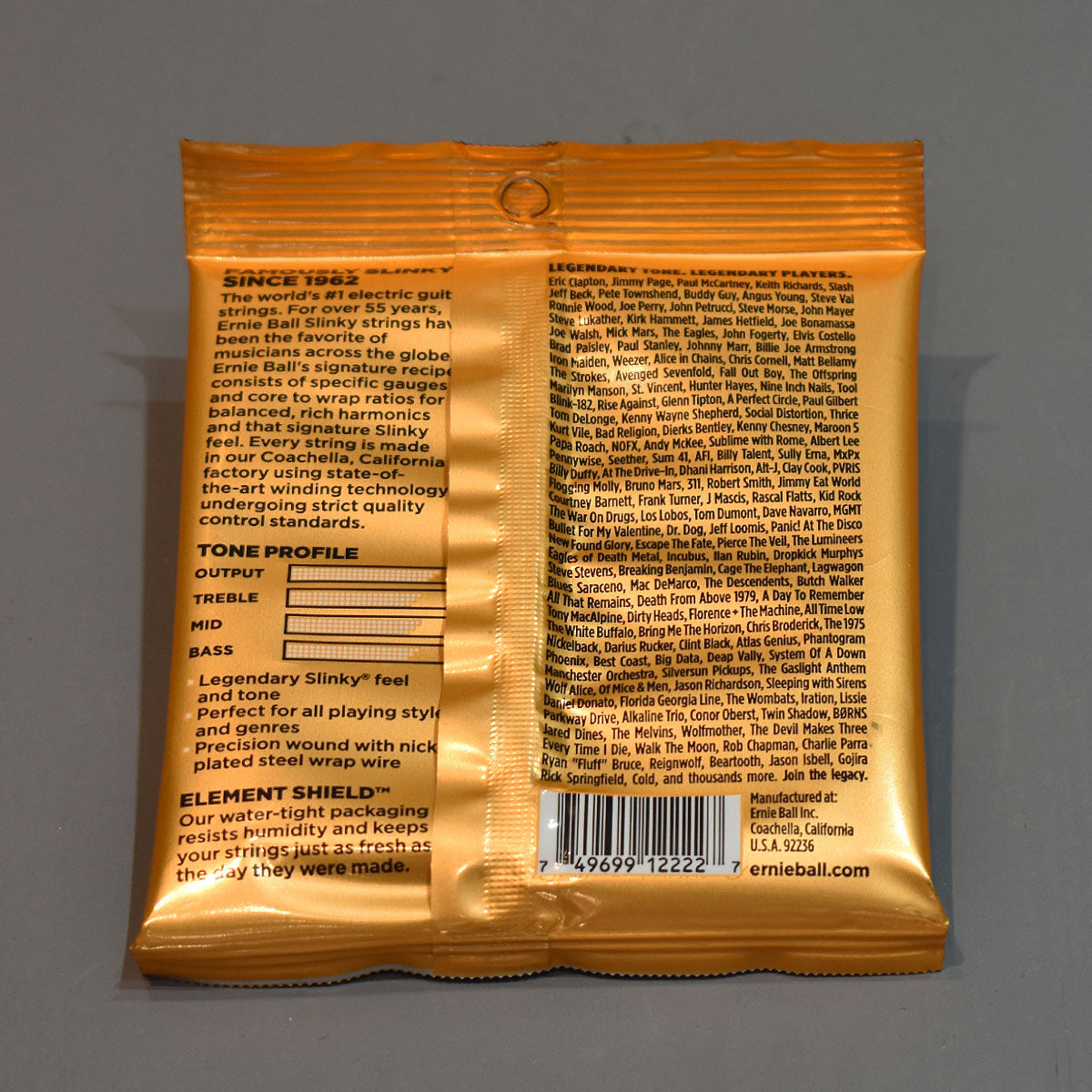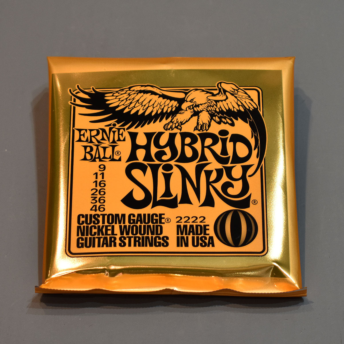 These popular Slinkys produce a well-balanced, all-around good sound. The Ernie Ball HYBRID SLINKY 2222 Electric Guitar Strings are made from nickel-plated steel wire wrapped around tin-plated hex-shaped steel-core wire. Produce a well-balanced, all-around good sound. Ernie Ball strings are precision manufactured to the highest standards and most exacting specs to assure consistency, optimum performance, and long life.