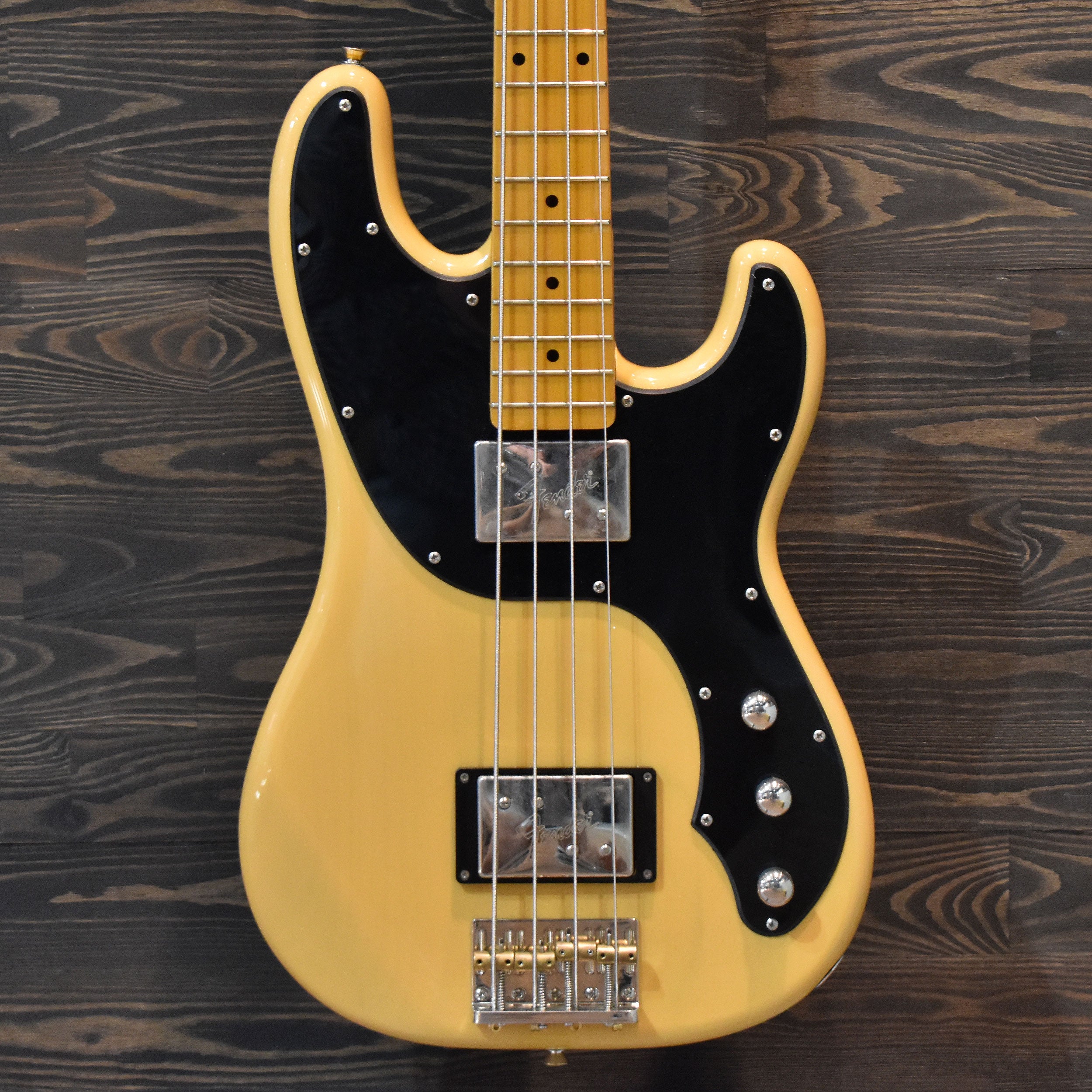 This pre-owned Fender Modern Player Telecaster Bass in Butterscotch Blonde is in great overall condition with light signs of wear. Comes with the genuine fender tweed bass hard case.